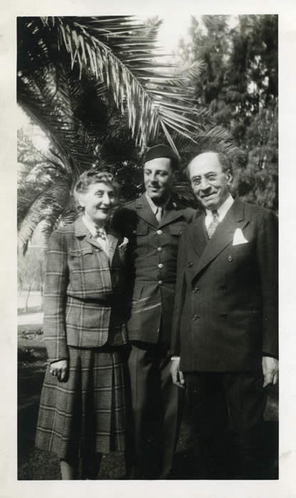 Carl with his parents Clara and August Levy and Edith Entratter at "Indian Reservation, California," January 1944